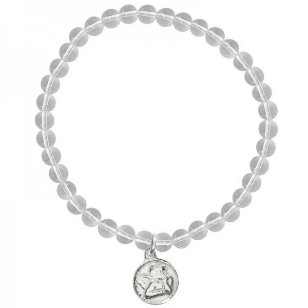 Pulsera piedra natural cuarzo blanco con medalla Primera Comunión